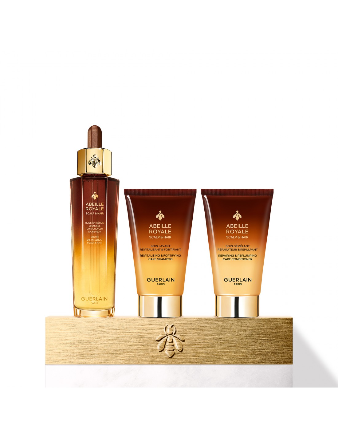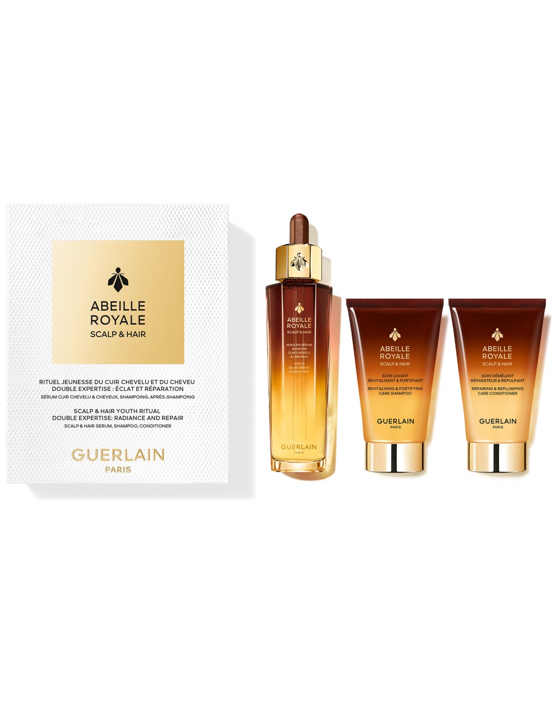 La Investigación científica Guerlain combina con la mítica miel de Abeja Negra de Ouessant y una jalea real francesa exclusiva, tres otras mieles procedentes de islas protegidas que, al participar en las cadenas de suministro exclusivas de Guerlain, garantizan su calidad y trazabilidad. Las mieles se fusionan magistralmente para ejercer una función específica rejuvenecedora de la piel.