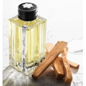 El exquisito frasco, envuelto en una elegante silueta de cristal que recuerda a un frasco de tinta Montblanc, destila elegancia y sofisticación. Una característica tira metálica acentúa los contornos del frasco, haciendo eco del icónico clip del instrumento de escritura Meisterstück.